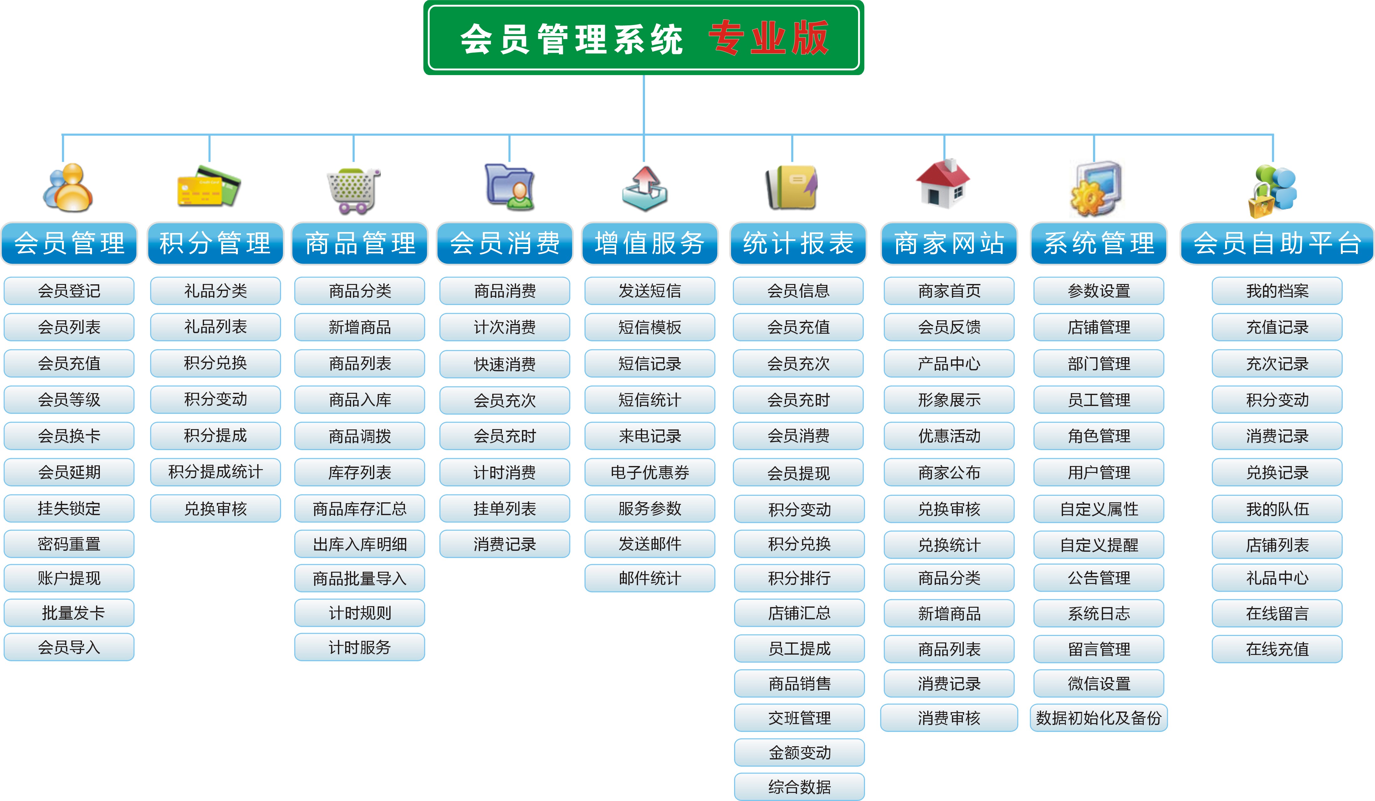 本系統(tǒng)功能強(qiáng)大、操作簡(jiǎn)單、無需安裝、采用BS架構(gòu),只需一根網(wǎng)線即可全國(guó)統(tǒng)一管理。其主要有 會(huì)員管理、積分管理、商品管理、會(huì)員消費(fèi)、增值服務(wù)、統(tǒng)計(jì)報(bào)表、商家網(wǎng)站、系統(tǒng)管理等大模塊 可以對(duì)分店管理及各種消費(fèi)數(shù)據(jù)分析!其適用于醫(yī)藥連鎖,美容美發(fā)連鎖店、超市連鎖店、服裝店連鎖店、母嬰店連鎖店、健身房連鎖店、 KTV連鎖店、俱樂部連鎖店、會(huì)所連鎖店、 理發(fā)店 連鎖店、汽車美容連鎖店、洗車連鎖店、鞋城飾品店等連鎖行業(yè)。
