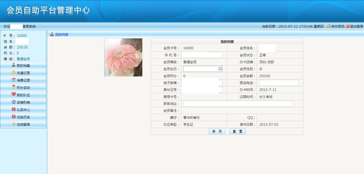 五通一卡通云會員管理系統(tǒng)我的檔案