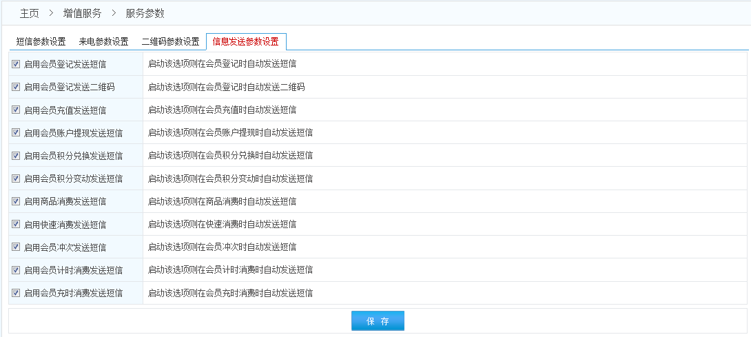 2.通知短信是會(huì)員在本系統(tǒng)中進(jìn)行消費(fèi)充值等操作時(shí)給會(huì)員發(fā)的提醒短信;營(yíng)銷(xiāo)短信是為了促銷(xiāo)等目的專(zhuān)門(mén)為一個(gè)或多個(gè)會(huì)員發(fā)送的(營(yíng)銷(xiāo)短信有且只能在發(fā)送短信的頁(yè)面發(fā)送)